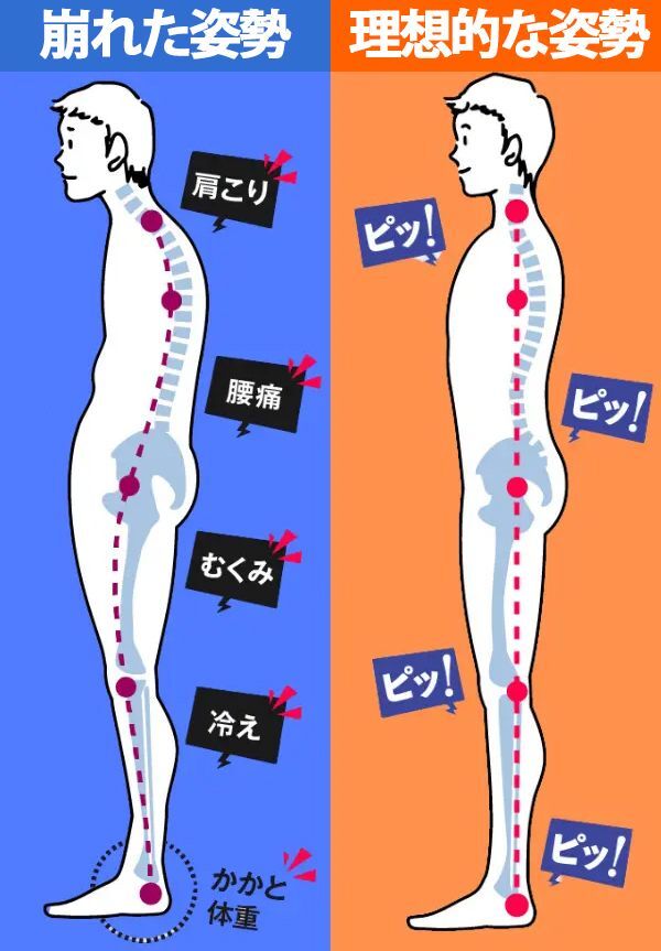 姿勢が崩れ筋肉のアンバランスが生まれます。